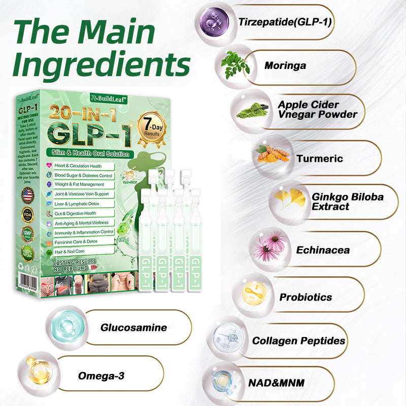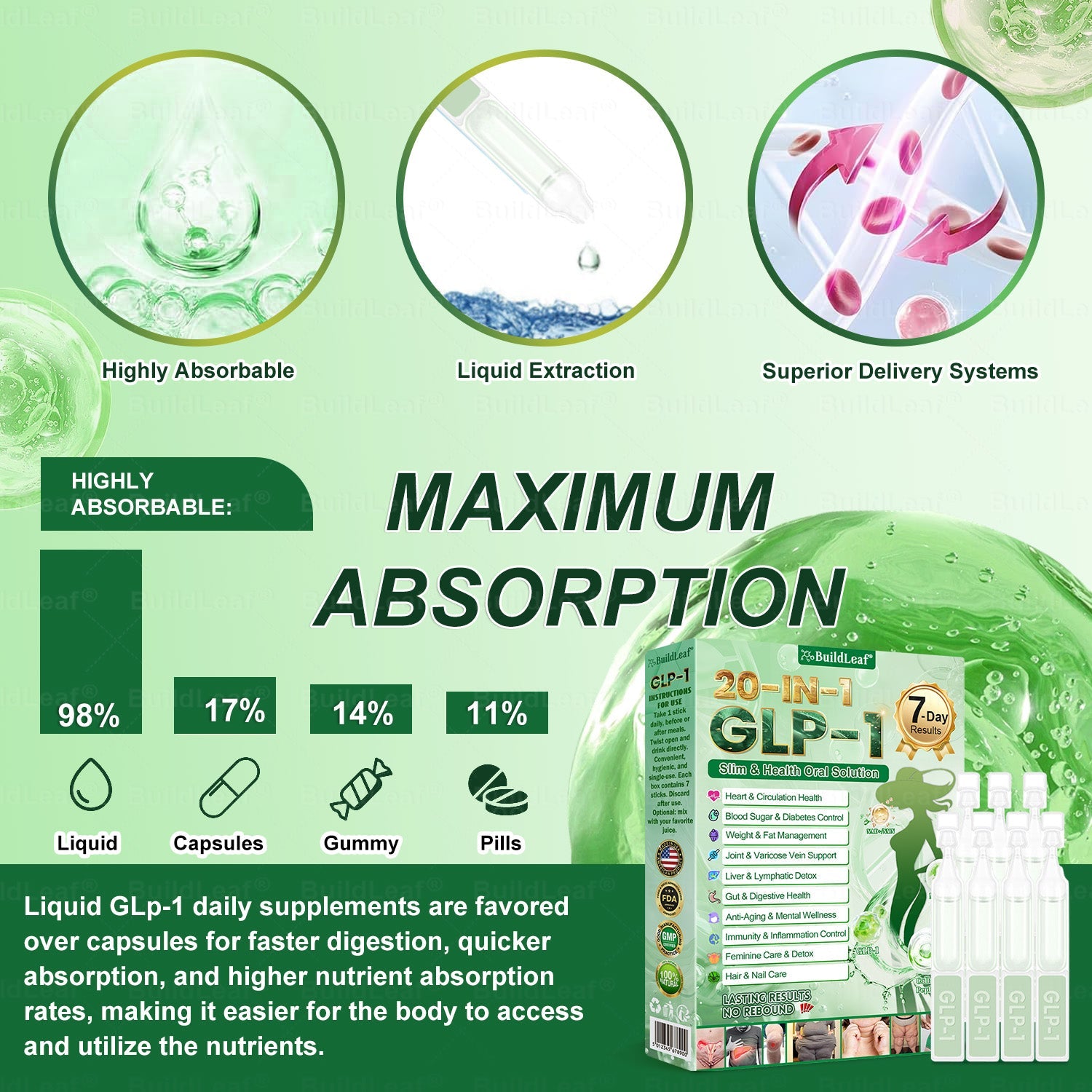 Clinically tested by endocrinologist, 𝘽𝙪𝙞𝙡𝙙𝙇𝙚𝙖𝙛® 𝗚𝗟𝗣-𝟭 𝟐𝟎-𝗶𝗻-𝟭 𝗦𝗹𝗶𝗺 & 𝑯𝒆𝒂𝒍𝒕𝒉 𝑶𝒓𝒂𝒍 𝑺𝒐𝒍𝒖𝒕𝒊𝒐𝒏 activation can significantly improve obesity and other health issues within just 7 days.