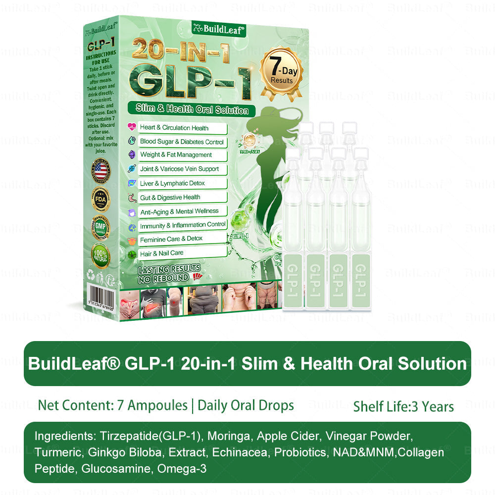 𝘽𝙪𝙞𝙡𝙙𝙇𝙚𝙖𝙛® 𝗚𝗟𝗣-𝟭 𝟐𝟎-𝗶𝗻-𝟭 𝗦𝗹𝗶𝗺 & 𝑯𝒆𝒂𝒍𝒕𝒉 𝑶𝒓𝒂𝒍 𝑺𝒐𝒍𝒖𝒕𝒊𝒐𝒏 was developed by a team of over 30 experts in international endocrinology and diabetology after more than 3 years of research. It combines Tirzepatidewith powerful herbal ingredients to boost metabolism, accelerate fat burning, and support digestive and lymphatic health. To further support the body during weight loss, the formula also includes Collagen Peptides, which stimulate the body’s collagen synthesis to enhance skin firmness, improve sagging and fine lines, and help reduce skin laxity caused by rapid weight loss. This oral solution has been approved by the U.S. Food and Drug Administration (FDA) for its safety and efficacy, offering a scientifically backed solution for weight loss and overall wellness.